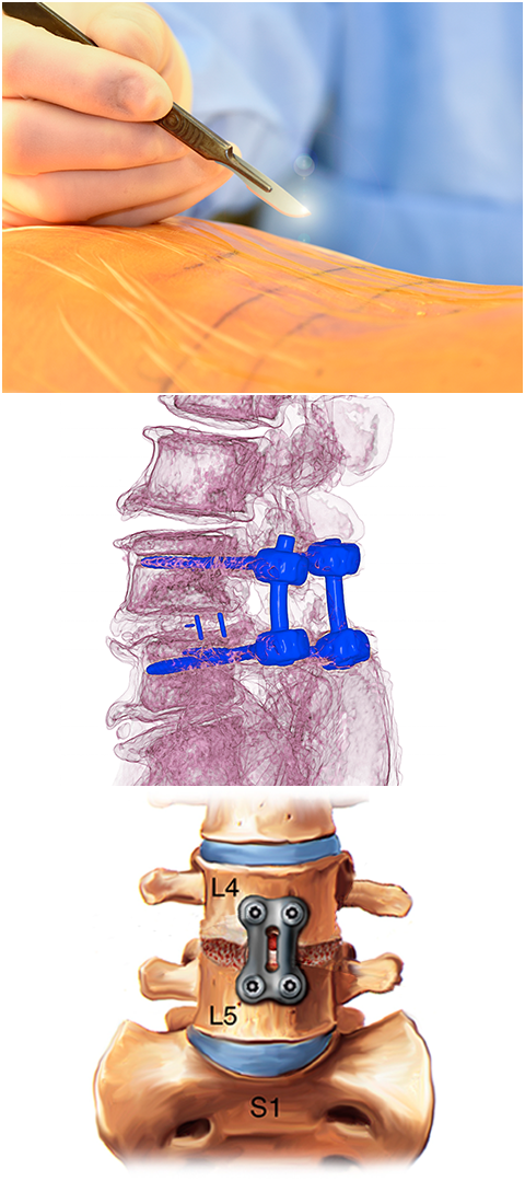 전신 마취를 하고 피부를 최소절개 후 척추에 접근합니다. 두 개 이상의 인전합 척추를 서로 연결하여 고정하는 수술로 척추들 간에 일어날 수 있는 움직임을 제한함으로서 척추 안정성을 증진시키고 척추 문제로 인한 통증을 완화하고자 하는 목적으로 도움을 줄 수 있습니다.